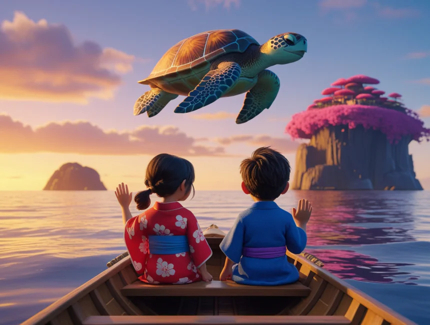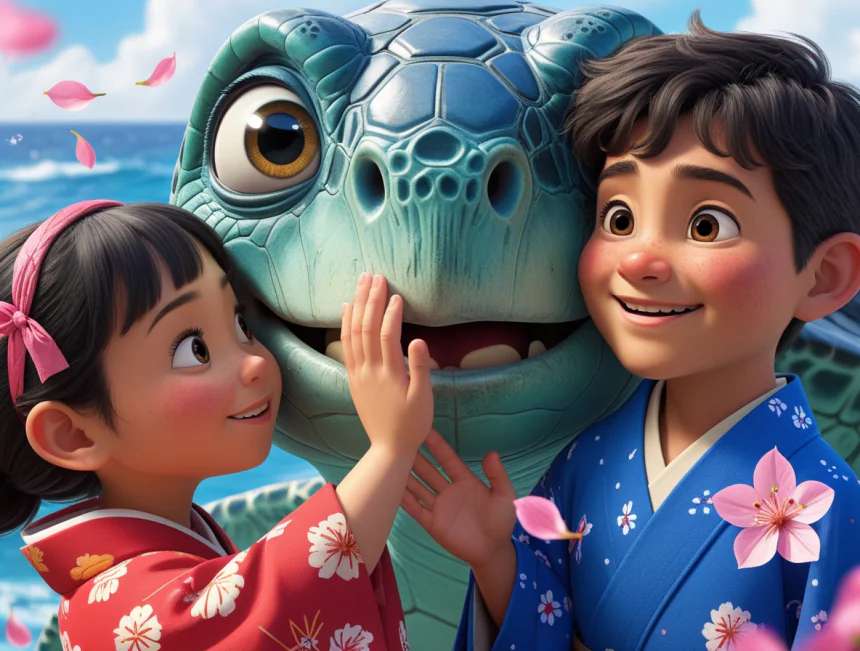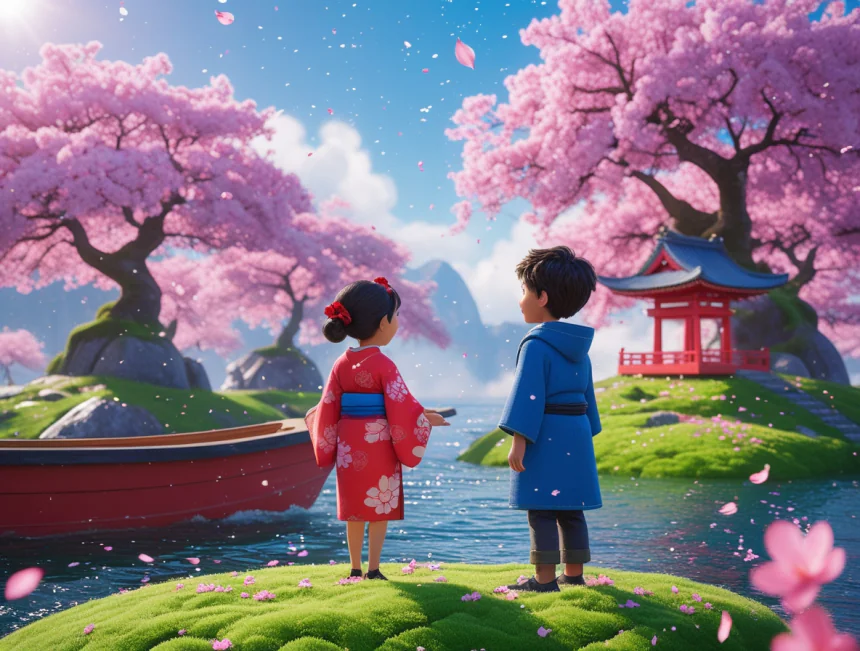 Bir varmış bir yokmuş, uzaklarda, güneşin doğduğu topraklarda, denizin kenarına kurulmuş, her tarafı pembe çiçekli Sakura ağaçlarıyla dolu şirin bir balıkçı köyü varmış. Bu köyde Yuki adında, saçları kömür karası, gözleri badem gibi bir kız çocuğu ve onun en iyi arkadaşı Kenji adında, cesur mu cesur bir erkek çocuğu yaşarmış.