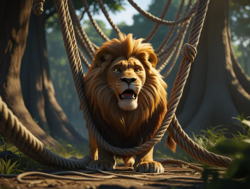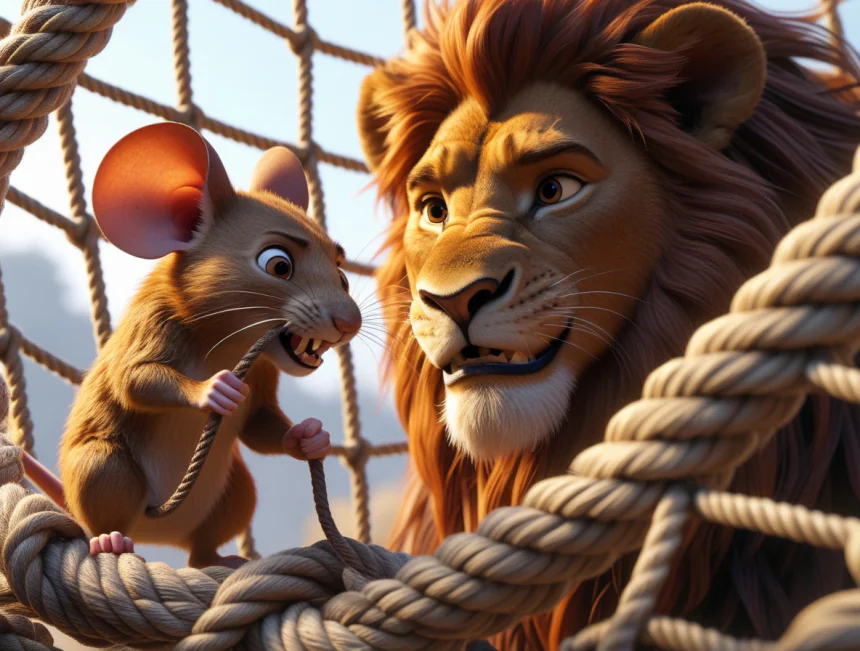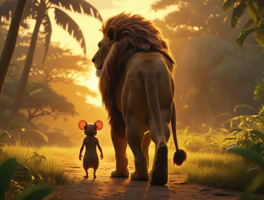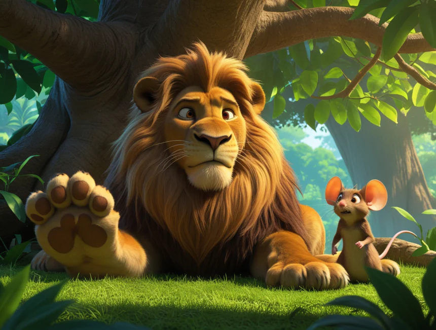 Ormanlar Kralı Aslan, küçük fareden önemli bir ders öğrenir.