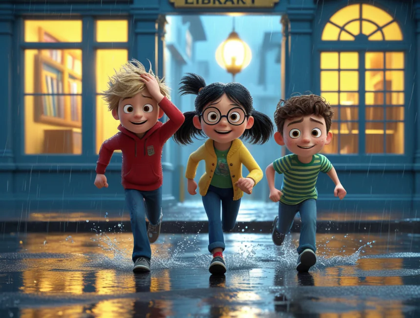Okul çıkışı yağmura yakalanan üç arkadaş, en yakındaki kütüphaneye sığınırlar.