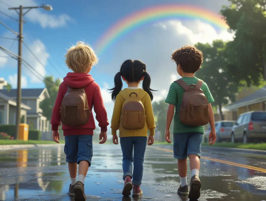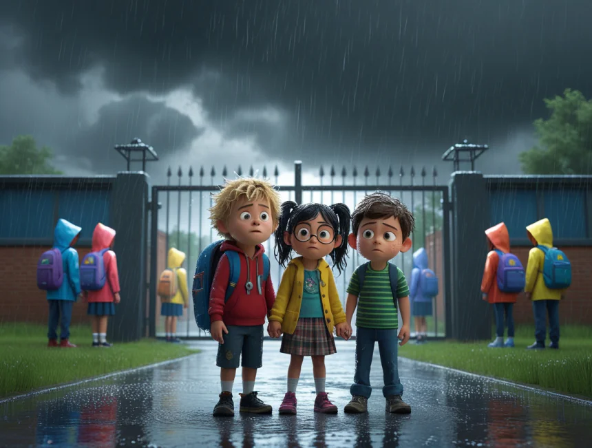Okulda dersler bitip zil çaldığında, herkes neşeyle bahçeye çıkmış. Ama o da ne? Sabahki güneşten eser yokmuş! Gökyüzü gri bulutlarla kaplanmış, hava birden soğumuş.