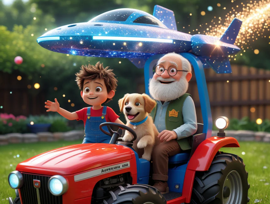 Tam o sırada içeriye pamuk sakallı, güler yüzlü Tonton Dedesi girmiş ve Can'ın bu haline gülümsemiş. Dede, "Haydi Can, Minnoş'u da al! Sizinle zamanın 'vızır vızır' aktığı yere gidelim!" demiş. Bahçedeki eski kırmızı traktörün yanına gitmişler ve dedesi traktöre sihirli tozlar serpmiş. Traktör birdenbire kanatlanmış ve "Hoppala!" diye ses çıkararak kocaman bir uzay gemisine dönüşmüş.