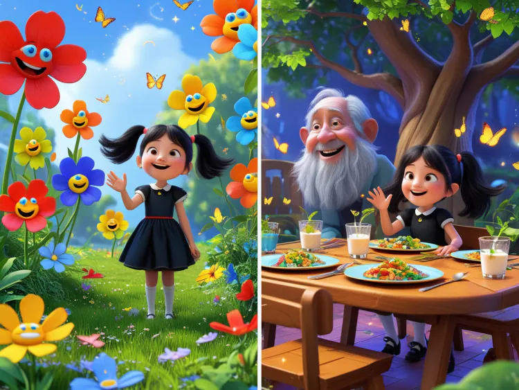 Öğle yemeğinde sihirli yemekler yemişler. Tabaklar kendiliğinden dolmuş lezzetli yemeklerle. Bardaklar "gulu gulu" sesler çıkararak süt doldurmuş. Çarşamba arkadaşlarıyla birlikte kahkahalarla gülmüş. Yemekler çok lezzetliymiş, sanki annesinin yaptığı gibi. Artık bu okulu çok sevdiğini anlamış. Kalbi "çat çut" sevinçle atmış.