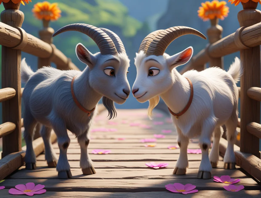 Çocukların bu sözleri ve çiçekli köprünün o büyüleyici güzelliği, inatçı keçilerin yıllardır katılaşmış kalbini yumuşatmış. Koca Boynuz, sakalını sıvazlayarak köprüye ağır bir adım atmış. Karşıdan da Sivri Sakal, toynaklarını vura vura gelmiş. Herkes nefesini tutmuş, nehir bile sanki susmuş. "Yine mi kavga edecekler? Köprüyü mü yıkacaklar?" diye korkuyla beklemişler.