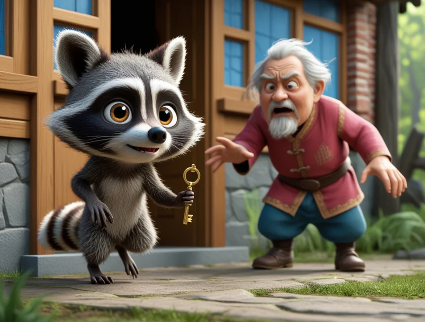 Ringo, anahtarı kaptığı gibi pencereden dışarı atlamış. Tam o sırada, evin sahibi yaşlı bir adam olan Bay Ali, mutfağa girmiş. Anahtarının yerinde olmadığını görünce "Eyvah!" diye bağırmış. Ringo'yu pencereden kaçarken görmüş. "Hırsız rakun!" diye seslenerek peşinden koşmaya başlamış. Ringo "tıpış tıpış" ormana doğru hızla koşmuş.