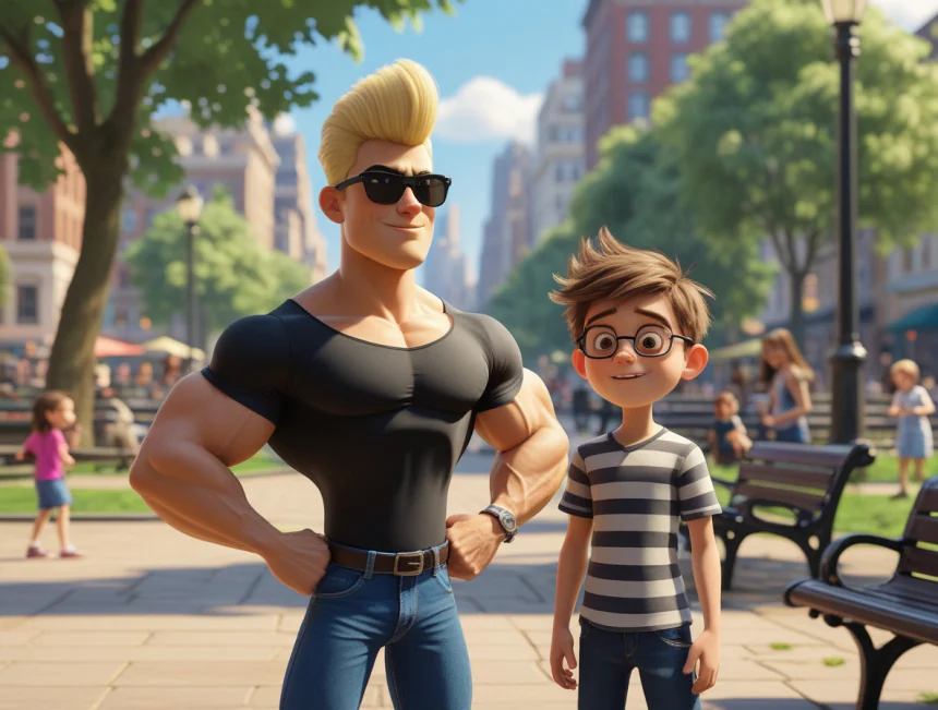 Bir zamanlar Johnny Bravo adında kaslı bir delikanlı yaşarmış. Johnny'nin sarı saçları gökyüzüne doğru kabarık dururmuş, siyah gözlüğü hiç çıkmazmış yüzünden. Her sabah aynaya bakıp "Vay be bebek, bu kaslar, bu saçlar, bu yakışıklılık!" dermiş. Annesi Bunny Teyze mutfaktan "Johnny, yine mi aynada poz kesiyorsun?" diye seslenirmiş ama Johnny dinlemezmiş.