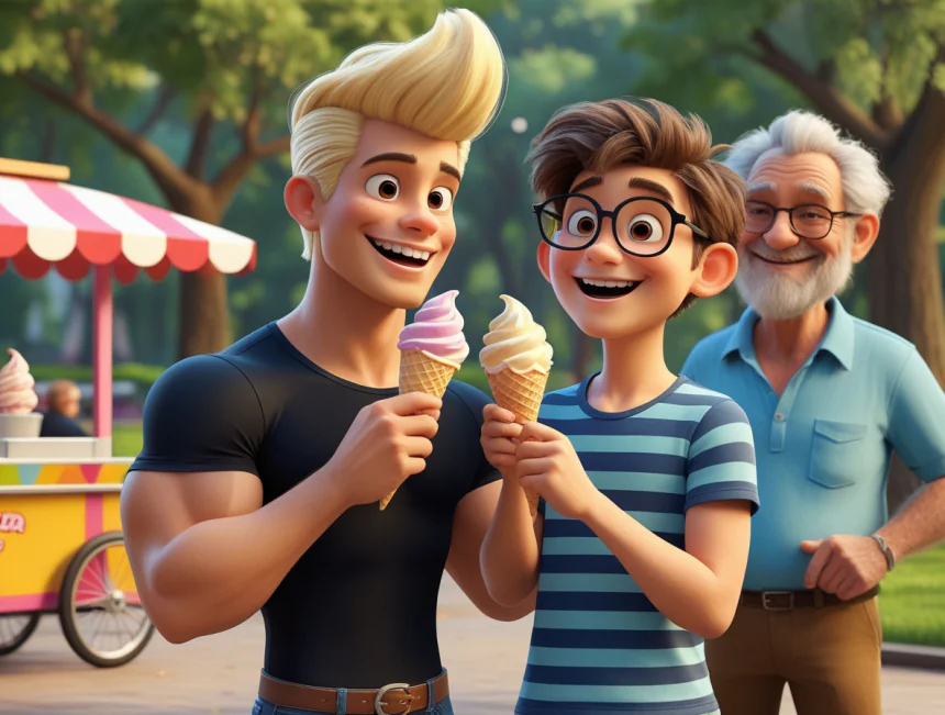 Akşam parktan çıkarlarken yaşlı adam tekrar görmüş onları. "Aa, siz dünkü yardımsever gençler değil misiniz? Gelin size dondurma ısmarlayayım" demiş. Johnny ve Carl çok sevinmişler. "Yeeeey!" Dondurmalarını yerlerken Johnny düşünmüş: Dünkü havalı Johnny'den çok bugünkü yardımsever Johnny daha mutluymuş. Carl'a dönmüş: "Biliyorsun, sen en iyi arkadaşsın. Bana hep doğruyu gösteriyorsun."