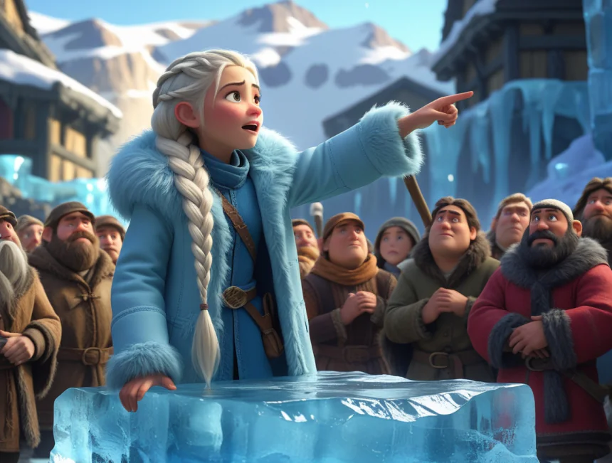 Elara yüksek bir buz kütlesine çıkmış ve seslenmiş: