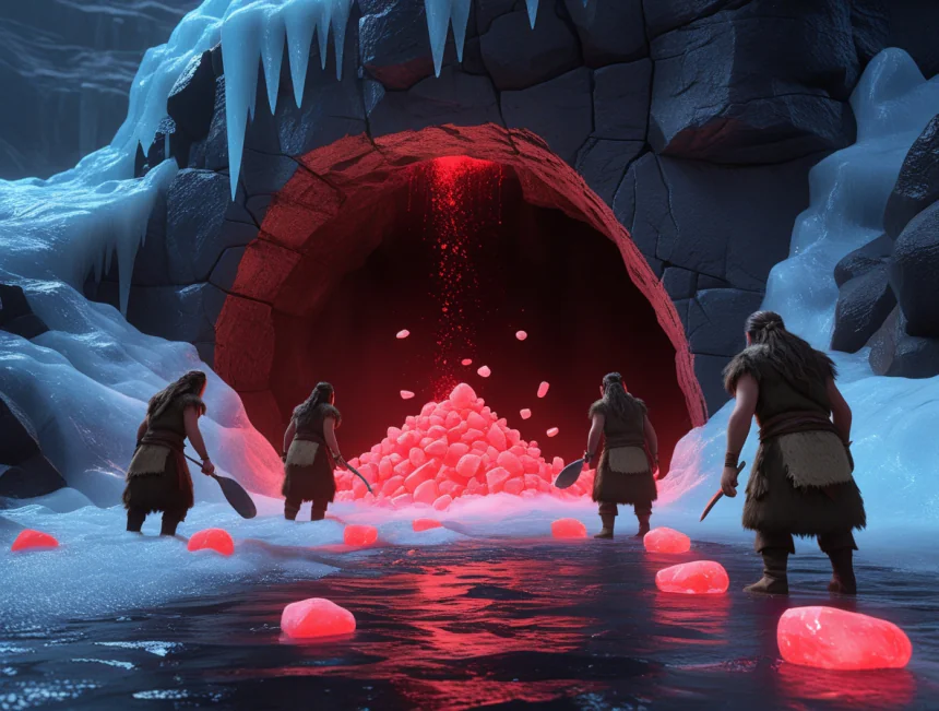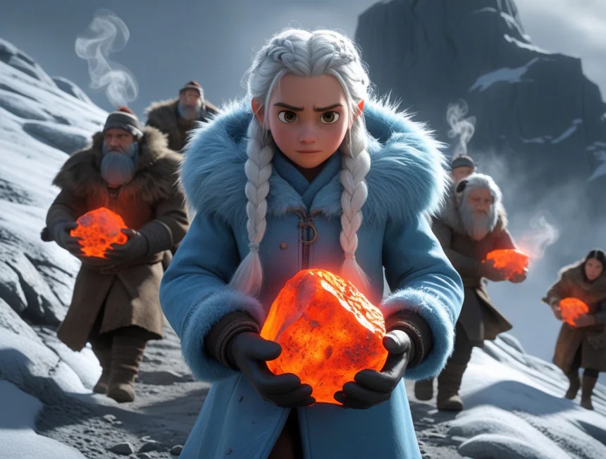Ancak bir gün, halkın bazı ileri gelenleri, "Neden daha fazla ısınmayalım? Neden evlerimizde tişörtle gezmeyelim?" diye düşünmeye başlamışlar. Krallığın altındaki yasak mağaralara inmişler ve oradan, dokunulduğunda etrafa büyük bir sıcaklık yayan kırmızı, parlak **"Alev Taşları"**nı çıkarmışlar.
