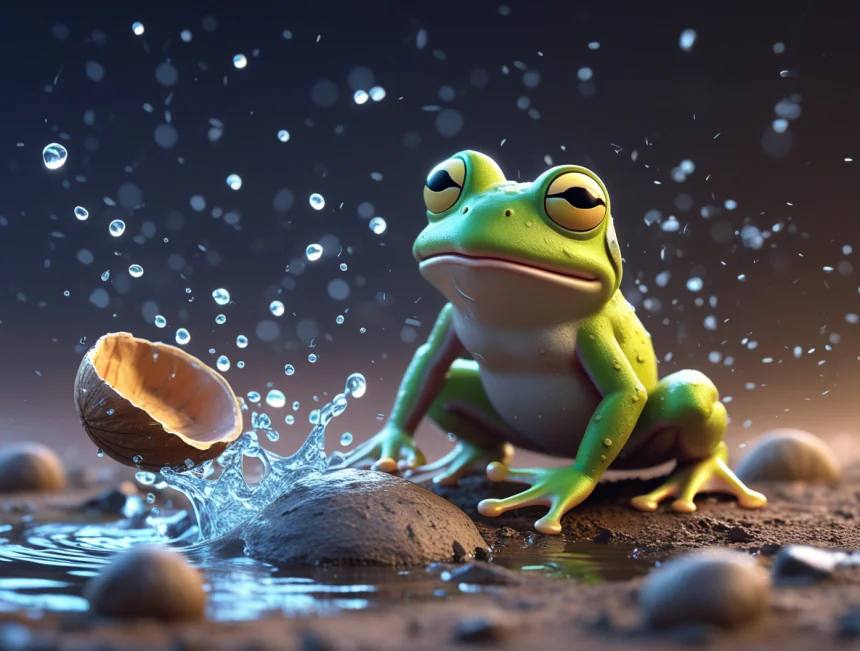 Göl kenarında yaşayan sevimli kurbağa Kero, papatyaya yardım eder.