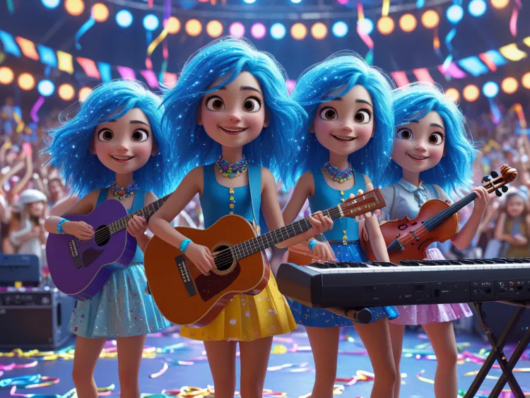 Bir hafta sonra, festival günü gelip çatmış. Mavi Güller, ellerinde mikrofonları ve en sevdikleri şarkılarıyla sahneye çıkmışlar. Gözleri parlıyor, kalpleri hızla çarpıyormuş. İlk şarkılarını söyledikleri anda, festival alanındaki kalabalık coşmuş ve alkışlarla onları desteklemiş. Buse, mikrofonu elinde tutarak şarkının her notasında müziğin ritmine uyum sağlamış. Zeynep, piyanoyu çalarken, melodiyi her tuşla birlikte birleştirmiş. Şirin, gitarı çalarken şarkının ruhunu yansıtmış. Selin, şarkıyı söyleyerek, kalbinde hissettiklerini herkese ulaştırmış.