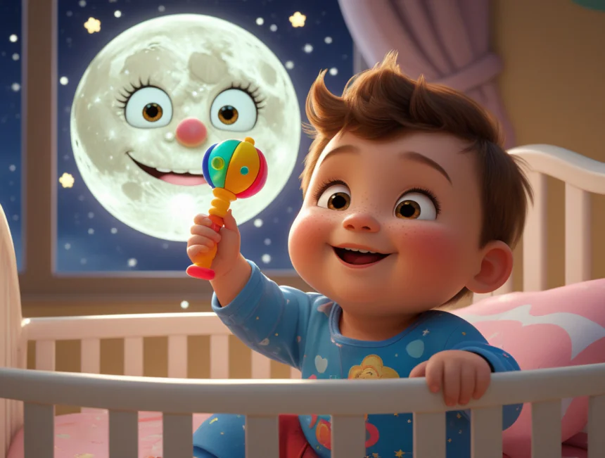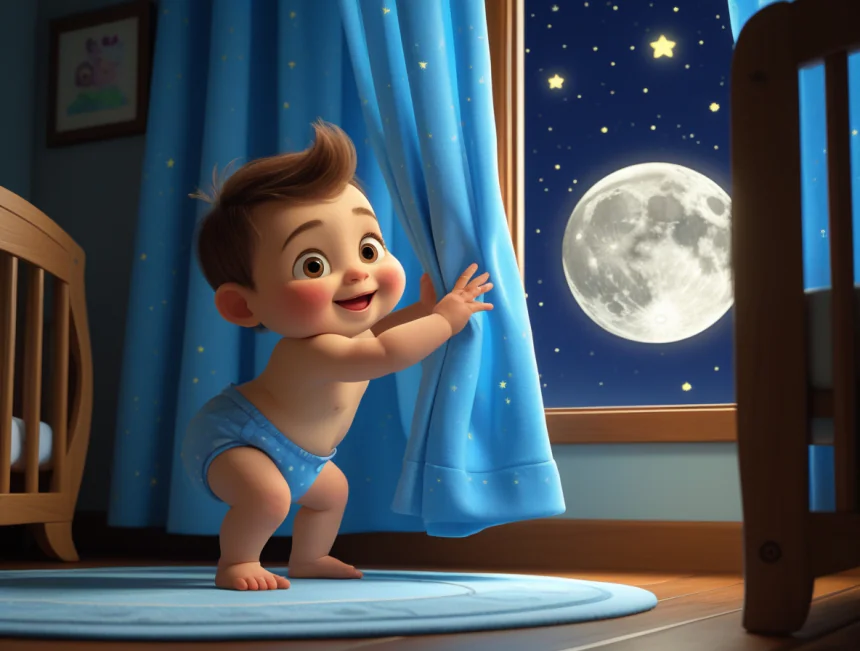 Efe, minik elleriyle perdeyi çekmeye çalışmış. "Hoooop!" diye tüm gücünü kullanmış. Perde yavaşça aralanmış. İşte orada! Bembeyaz, kocaman Ay! Ay, Efe'yi görünce daha da parlamış. Efe, sevinçle "Aaay! Aaay!" diye tekrar el sallamış. Ay da sanki "Merhaba minik dostum!" der gibi Efe'ye kocaman bir gülücük atmış. Efe, Ay'ın gülücüğünü görünce kahkahalarla "Kıkır kıkır!" diye gülmüş.