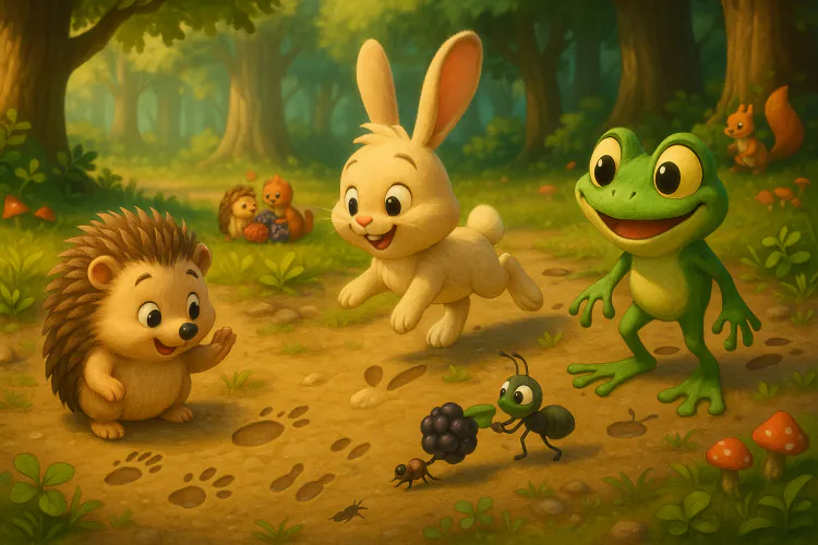 Sonra birlikte çamurda izler bıraktılar. Minik Kirpi'nin izi yuvarlacıktı. Tavşan'ın izi uzundu. Kurbağa'nın izi ise komik bir şekil oluşturdu.