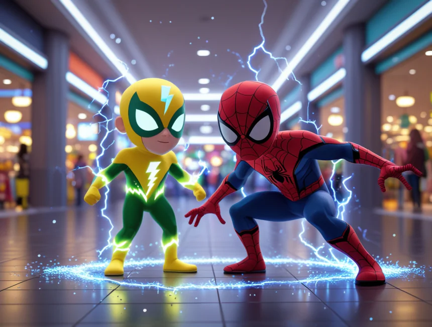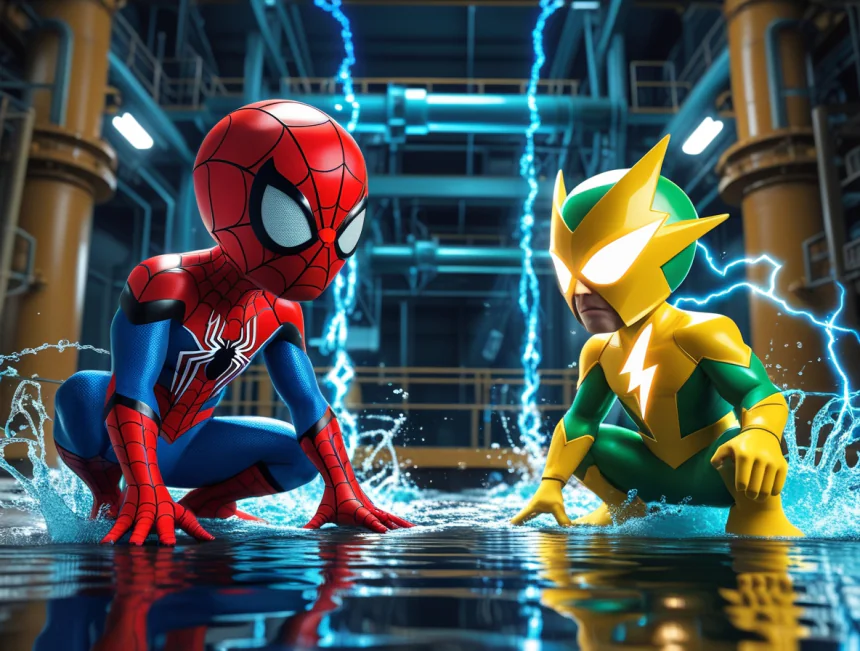 Örümcek Adam ilk saldırmış ama Elektro çok güçlüymüş. Ağlarını yakmış, onu geri püskürtmüş. "Bu kolay olmayacak" demiş Örümcek Adam. Ama pes etmeyip yeni bir plan yapmış. Su kullanarak Elektro'nun gücünü zayıflatmayı düşünmüş ve akıllıca hareket etmiş.