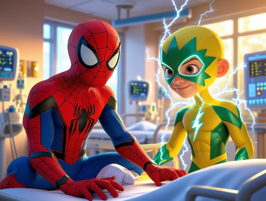 Ertesi gün Elektro hastaneye saldırmış. Hastanenin elektrik sistemini bozmuş, "Bzzzzt!" sesleriyle makineleri durdurmaya çalışmış. Hasta insanlar çok korkmuşlar. Örümcek Adam hızla hastaneye gitmiş ve hastaları tek tek güvenli yerlere taşımış. "Korkmayın, sizi koruyacağım!" demiş ama Elektro yine kaçmayı başarmış.