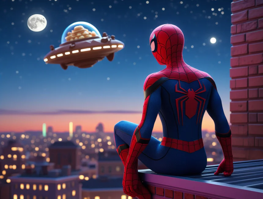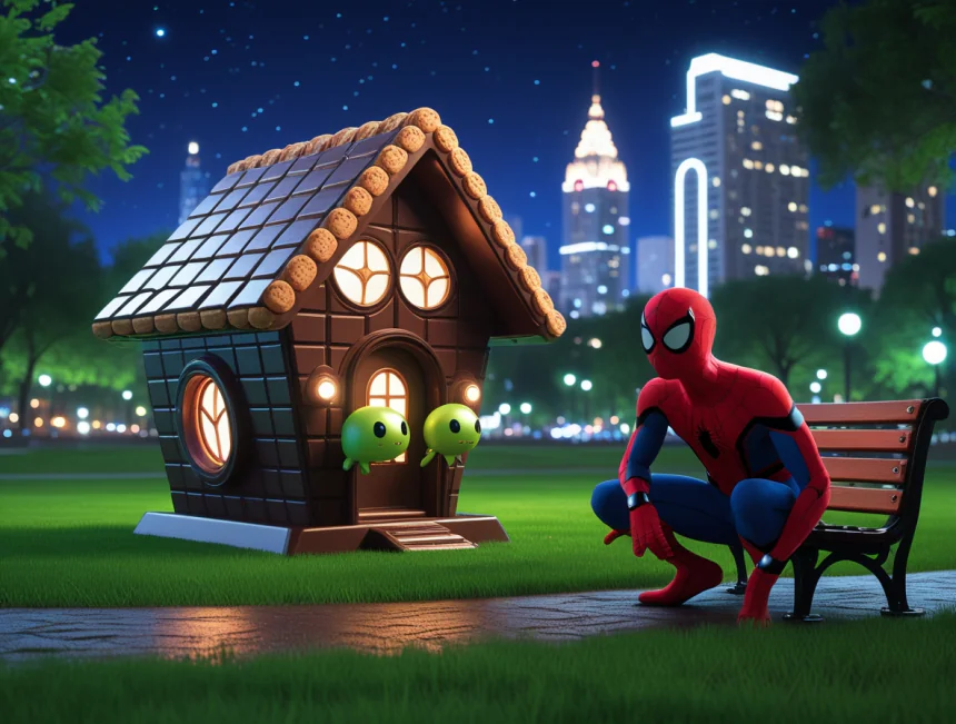 Örümcek Adam, gece parka inen çikolatadan bir uzay gemisi görür!