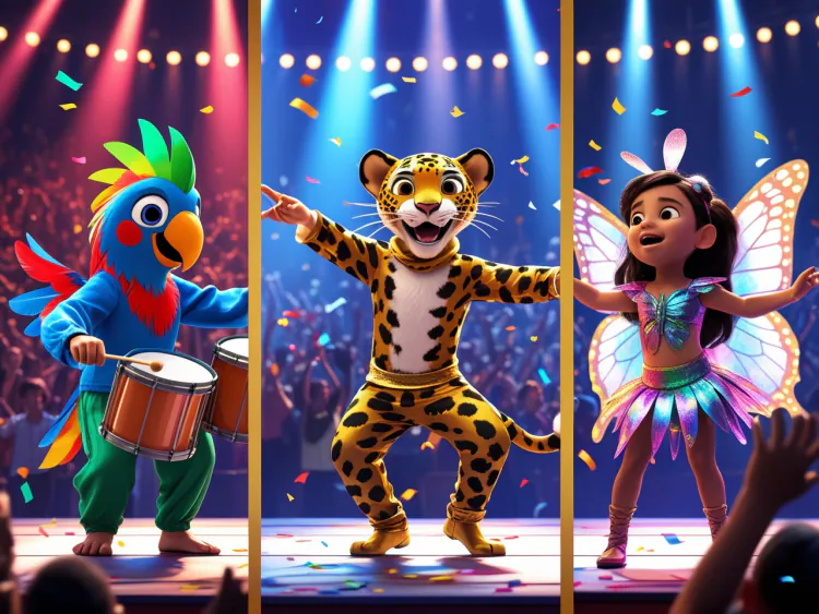 Yarışma günü geldiğinde çok heyecanlıymışlar. Sahneye çıktıklarında Gustavo'nun elleri titriyormuş. "Bam bam!" diye davulu çalmaya başladığında ritim biraz bozukmuş. Pepe dans ederken "Hop!" diye tökezlemiş. Isabella da heyecandan sesini çıkaramaz olmuş. Seyirciler "Hmm" diye mırıldanmaya başlamışlar. Üçlü çok utanmış ve sahneyi terk etmek istemişler.