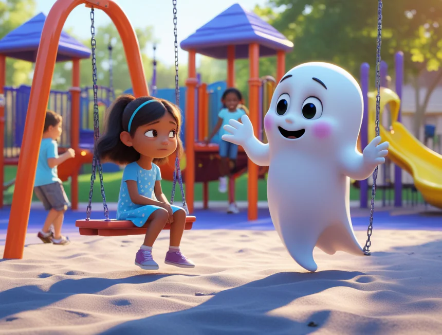 Bir gün parkta oynayan küçük bir kız görmüş. Kız tek başına salıncakta sallanıyormuş ve çok üzgün görünüyormuş. Casper "Merhaba, ben Casper! Seninle arkadaş olmak isterim" demiş nazikçe. Ama kız onu görünce "Ayyy, hayalet!" diye bağırarak kaçmış. Casper çok üzülmüş ama yine de pes etmemiş.