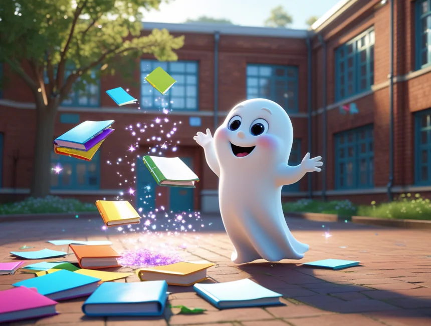 Ertesi gün okulun yanından geçerken bir çocuğun kitaplarını düşürdüğünü görmüş. "Yardım edeyim!" demiş Casper ve kitapları havada uçurarak çocuğun eline vermiş. Çocuk önce korkmuş ama sonra "Vay be, çok harika!" demiş. "Sen gerçek bir hayalet misin?" diye merakla sormuş. Casper gülümsemiş ve "Evet ama korkutucu değilim, sevimli bir hayaletim!" demiş.