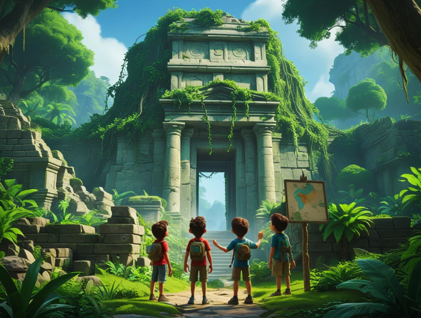 Nehir haritayı açmış: "Bakın! Yumurta, Sarmaşık Ormanı'ndaki Unutulmuş Tapınak'ta saklı!" demiş. Dört arkadaş hemen çantalarını hazırlamışlar. Fenerler, ipler, büyüteçler... Tam bir macera ekibi olmuşlar!