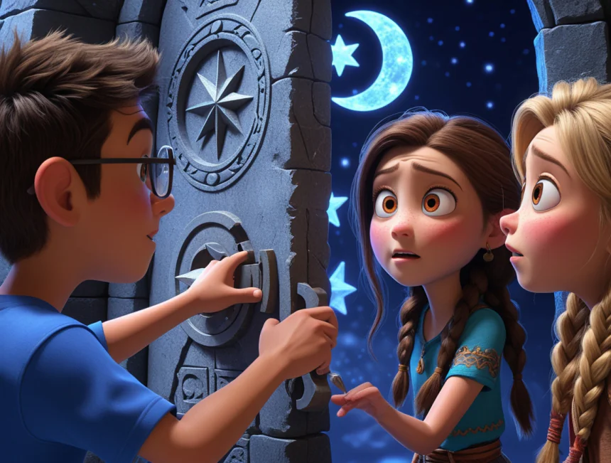 Ömer gözlüğünü düzeltmiş: "Hımm, bu bir bulmaca! Eğer güneş, ay ve yıldız sembollerini yan yana getirirsek kapı açılır." Ömer taşları "tıkırt, tıkırt" diye çevirmiş. Ve büyük bir gürültüyle "GÜMMM!" diye taş kapı açılmış.