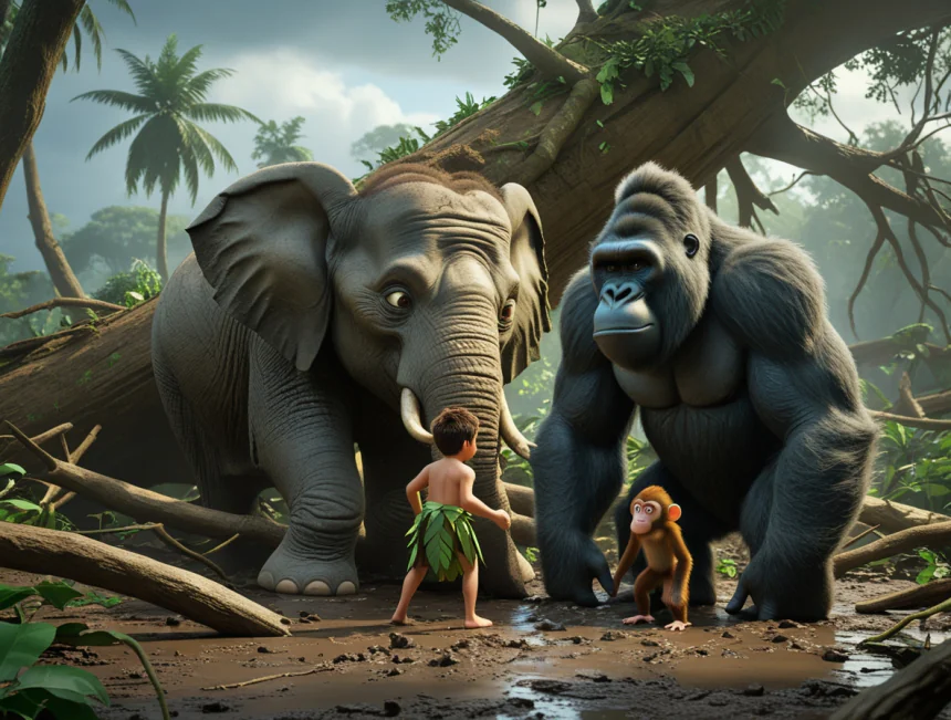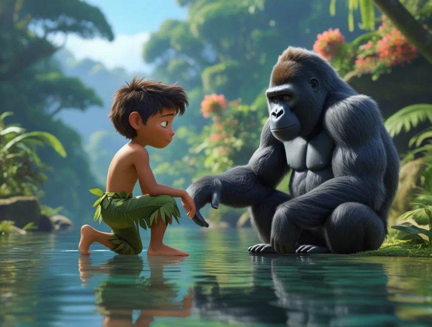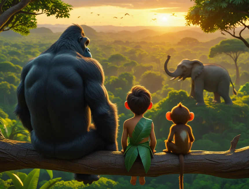 Bir varmış bir yokmuş, devasa ağaçların gökyüzüne uzadığı, rengarenk papağanların şarkı söylediği, nehirlerin aktığı yemyeşil, balta girmemiş bir ormanda hayat varmış. Bu ormanın en özel ve en meraklı sakini, Tarzan adında küçük bir çocukmuş.