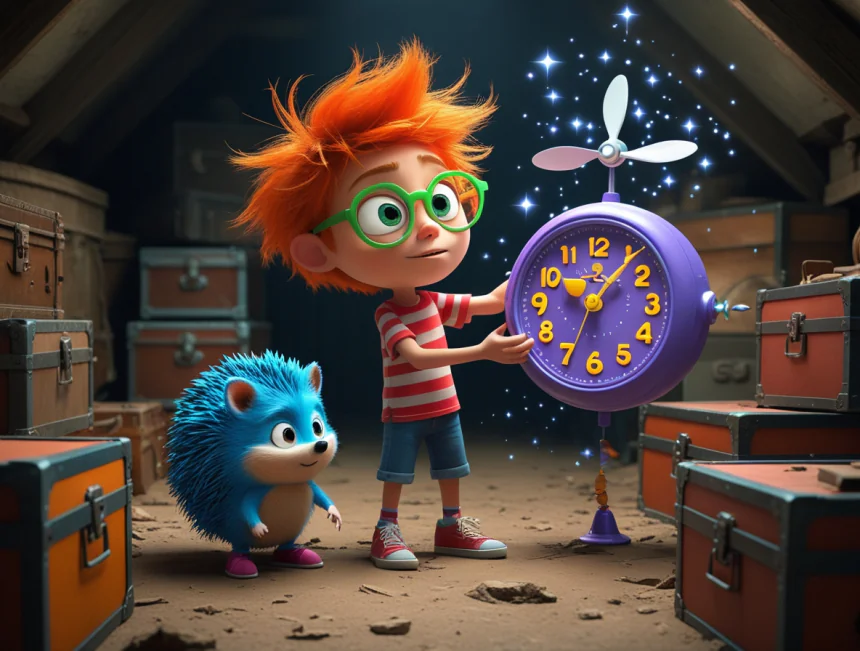 Bir gün Rüzgar, evlerinin tavan arasında tozlu sandıkları karıştırırken çok garip bir nesne bulmuş. Bu, üzerinde rakamlar yerine meyvelerin olduğu, akrebi ve yelkovanı ters dönen, mor renkli pervaneli bir **"Gıdıklanan Saat"**miş. Rüzgar, saatin kenarındaki gümüş anahtarı "gırç gırç" diye çevirmiş. Saat birden "Kikir kikir!" diye gülmüş ve pervanesi fırıl fırıl dönmeye başlamış.