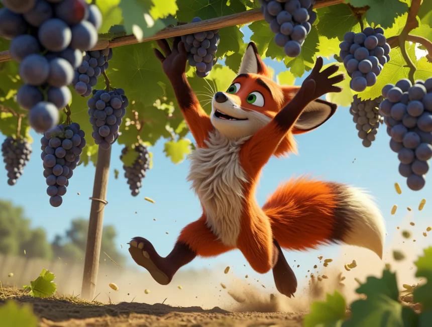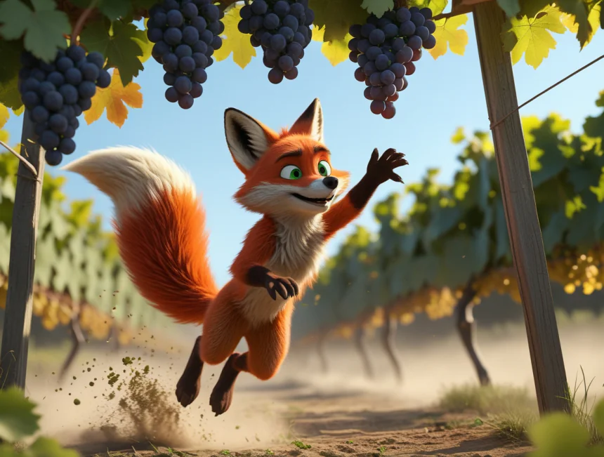 Açlıktan kıvranan tilkinin üzüm bağında geçen masalıdır.