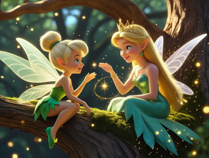 "Merhaba küçük peri, ben Kraliçe Aurora" demiş nazik bir sesle. "Sen neden bu kadar üzgünsün?" Tinker Bell utanarak anlatmış: "Kraliçem, ben tek uçamayan periyim. Arkadaşlarım benimle dalga geçiyor." Kraliçe gülümsemiş: "Ah küçüğüm, her perinin kendine özel bir yeteneği vardır. Belki sen de farklı bir şey yapabiliyorsundur."