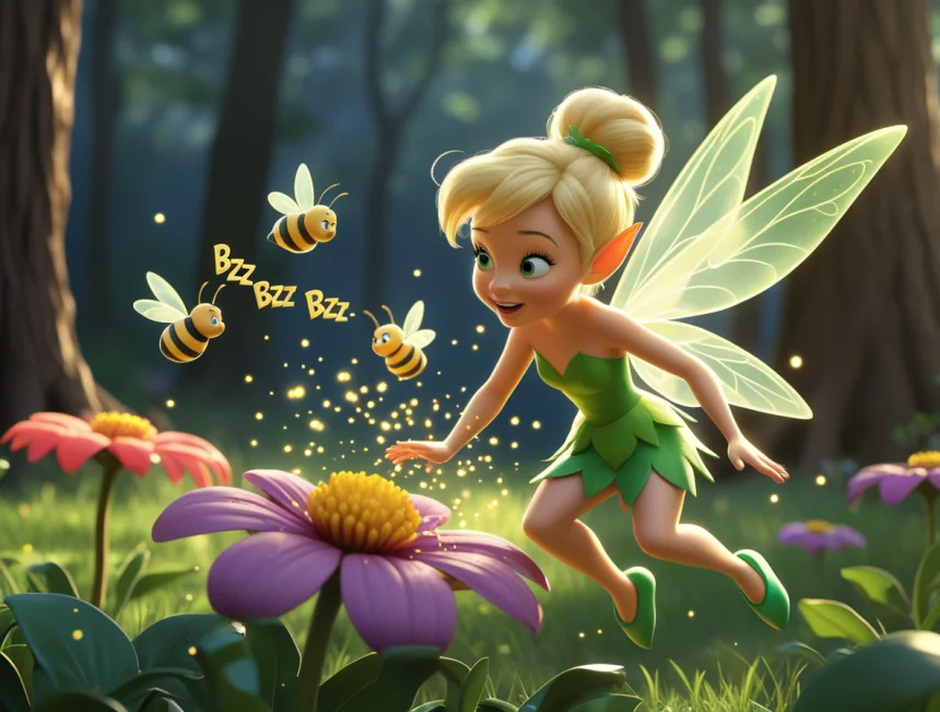 Günlerce pratik yapmış Tinker Bell. Bazen düşmüş, bazen çarpmış ama vazgeçmemiş. Arkadaşları başta gülmüş ama sonra ona yardım etmeye başlamış. "Kollarını böyle aç!" demiş mavi peri. "Kanatlarını daha hızlı çırp!" demiş pembe peri. Hep birlikte çalışmışlar.