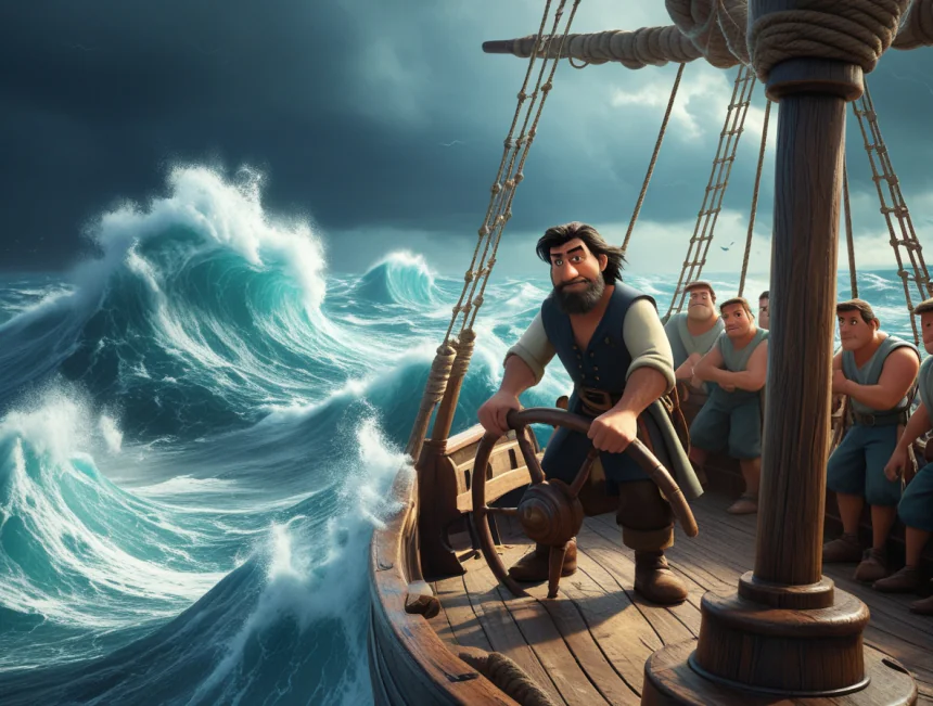 Bir gün, artık eve dönme vakti gelmiş çatmış. Denizci Murat, gemisini ve tayfasını toplamış, dümeni Karadeniz'e çevirmiş. Ama yollar uzun, denizler tuzaklarla doluymuş. Daha yolun başında, gökyüzü aniden kararmış, devasa dalgalar "gümbür gümbür" gemiye vurmaya başlamış. "Eyvah, fırtına kopuyor!" diye bağırmış tayfa.